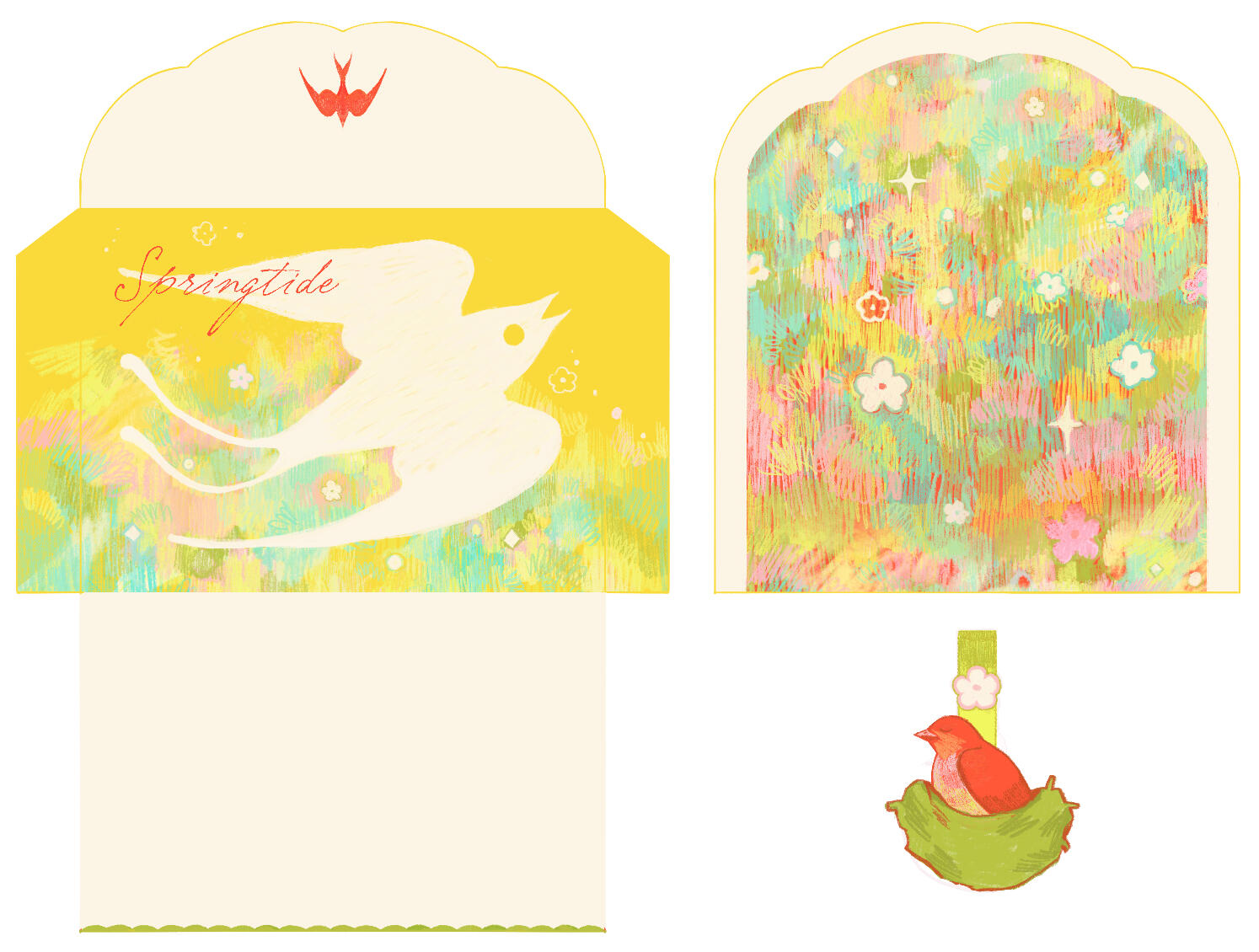 8 page zine about the migration of a swallow, accompanied by a letter set (envelope, letter paper and stamp stickers)